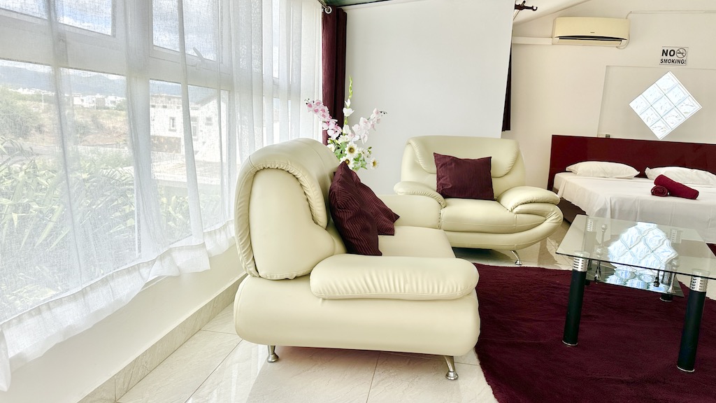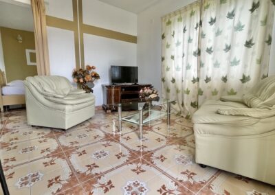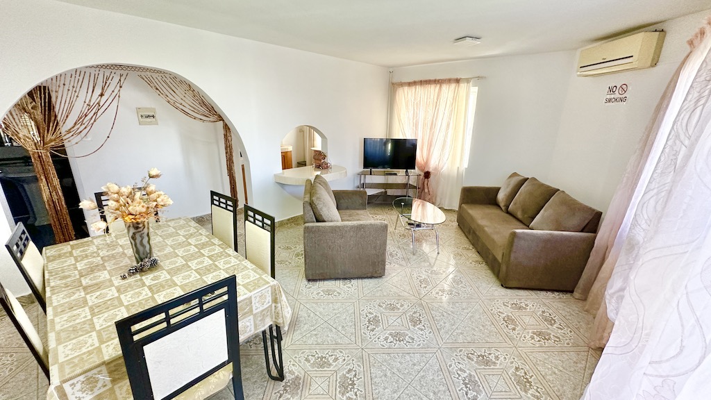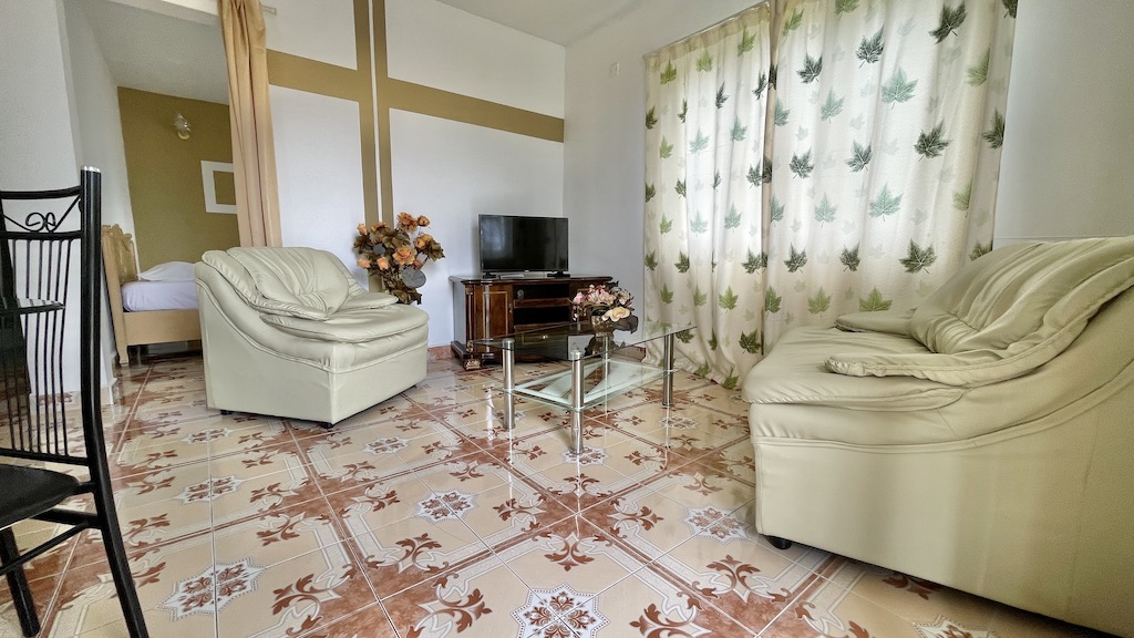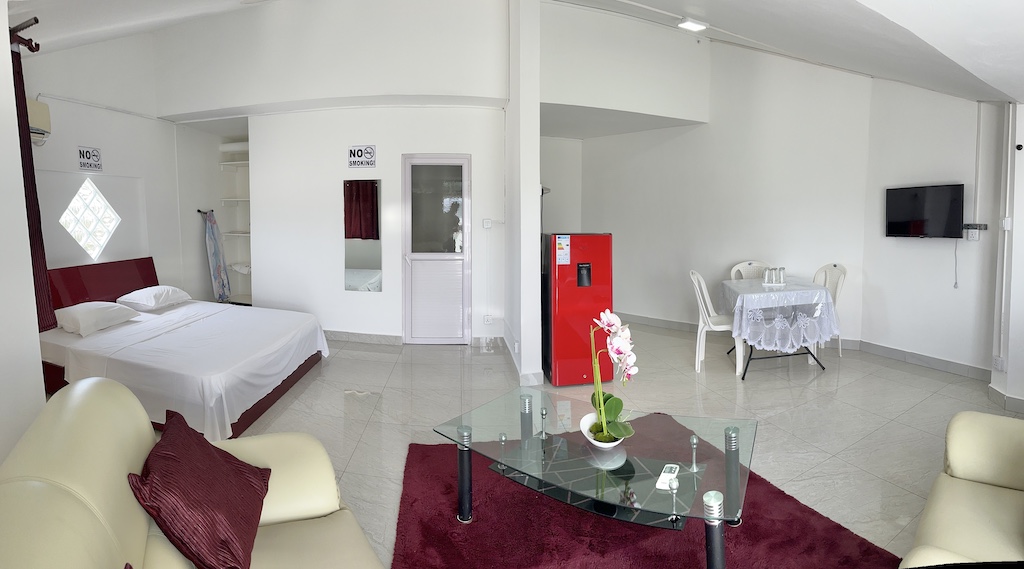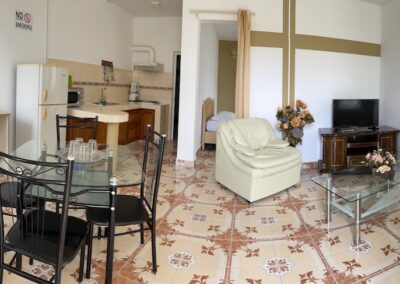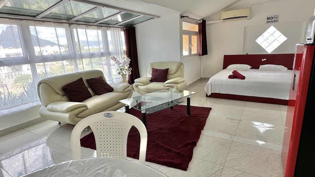 In the west of the island, one hour far from the airport, there is the private luxury Sunshine villa. Sunshine Villa is an apartment hotel without service with options for cooking.